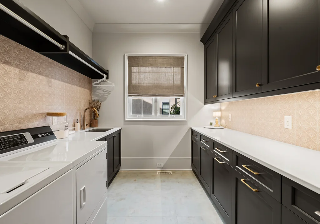 Upstairs, the second level includes three ensuite bedrooms, a loft, media lounge with bar, secondary laundry room, office, and dedicated fitness space. The third floor presents a versatile game room or flex space, complete with a moody full bath that is ideal for entertaining or a private escape.