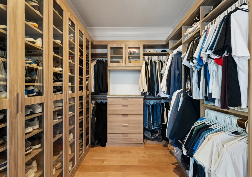 The main level is designed for both refined living and effortless entertaining, featuring formal living and dining rooms, a private office, a temperature controlled wine display, and a show-stopping chef’s kitchen with a scullery, expansive double islands, and statement underlighting that flows seamlessly into inviting gathering spaces.